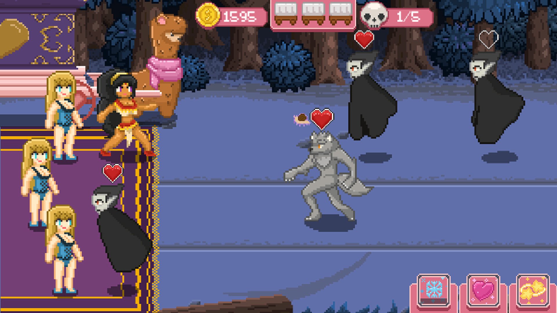 Sexy Caravan is a micro tower defense in which you seduce the monsters before they reach the caravan. Combine different spells, seduce a lot of monsters, help Anastacia's girls to serve everyone, and upgrade the most famous Sexy Caravan of the Kingdom
