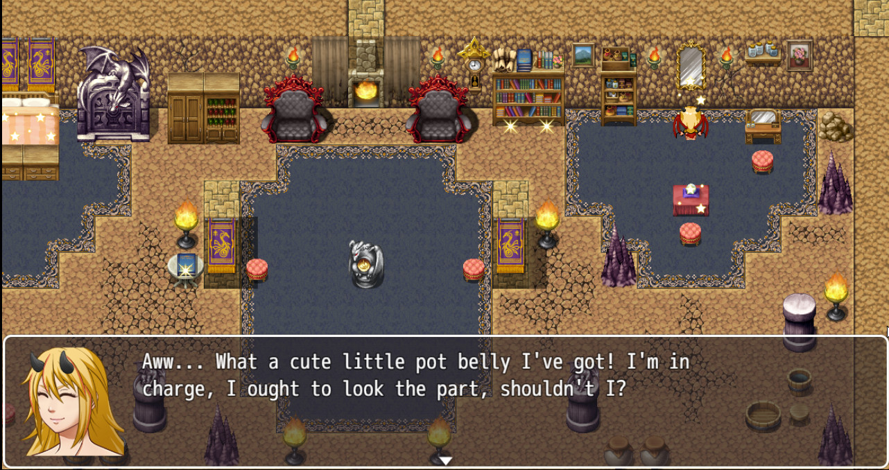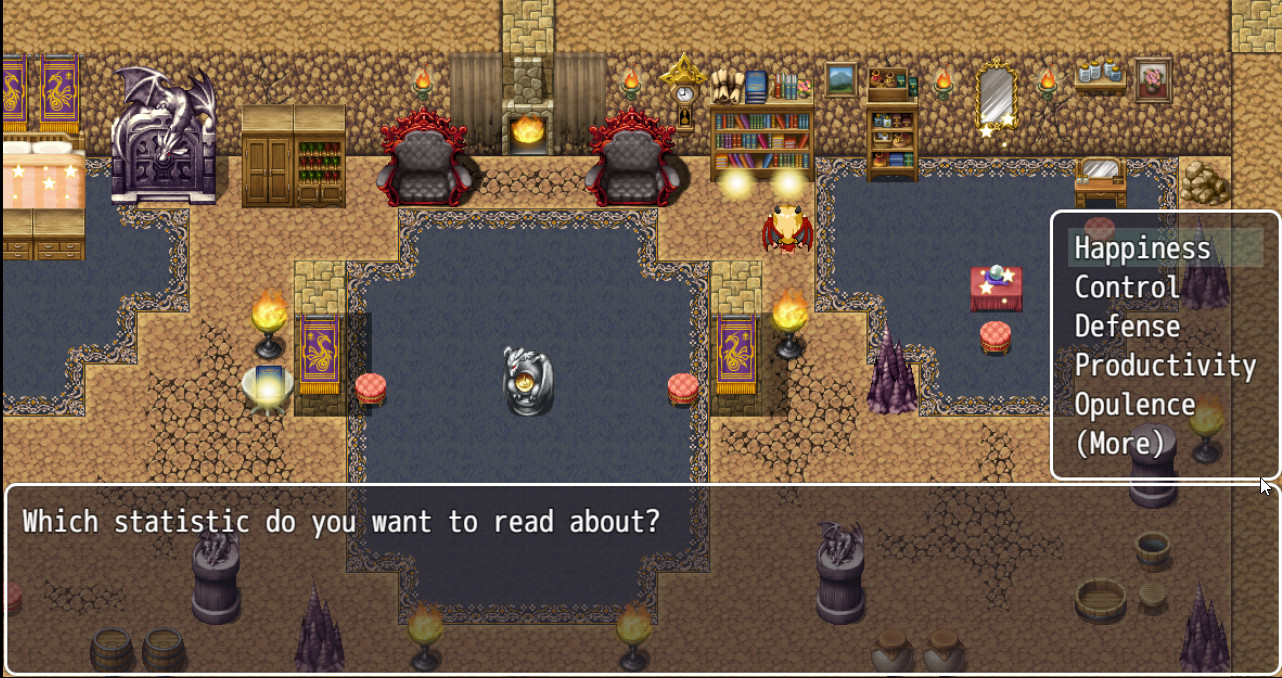 This game is a simple city builder made in RPG maker. You play as one of three dragon girls who take over a town filled with humans and extort them for all they are worth. Order around the humans and other dragons in your court to do your bidding.